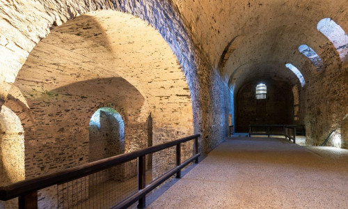 Hradné pivnice s možnosťou prehliadky podzemných priestorov a obranného systému hradu.